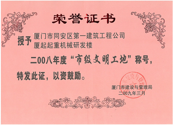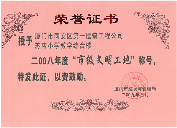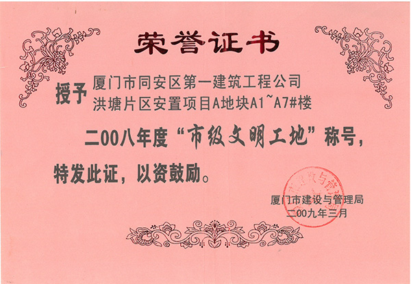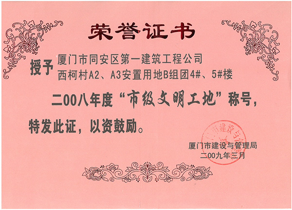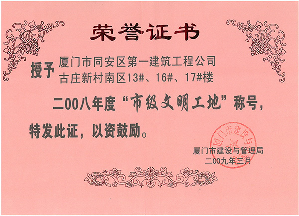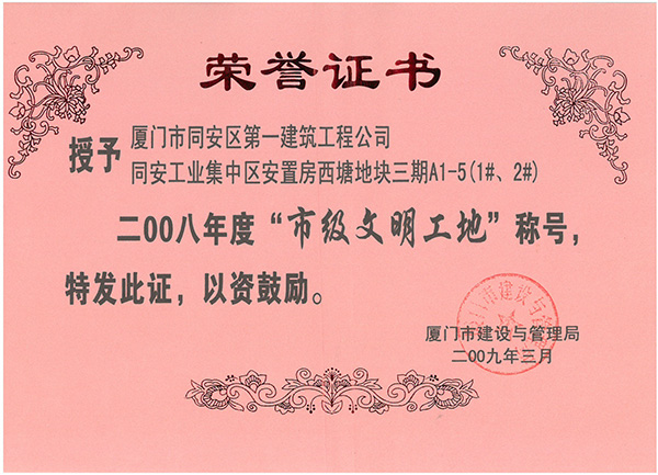 2008年度“市級文明工地”鳳凰城一期B標(biāo)段5#-11#樓