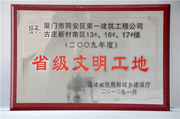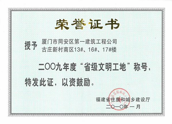 2009年度“省級文明工地”古莊新村南區(qū)13#、16#、17#樓