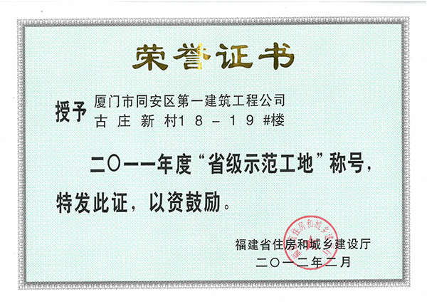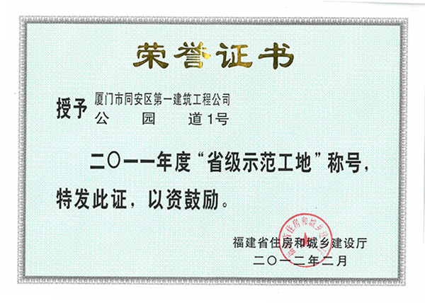 2011年度“省級(jí)示范工地”公園道1號(hào)