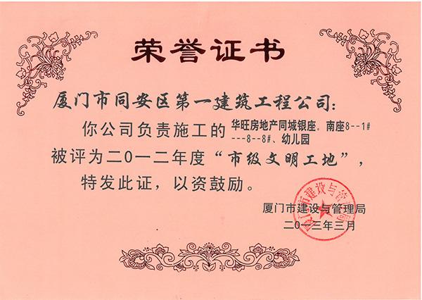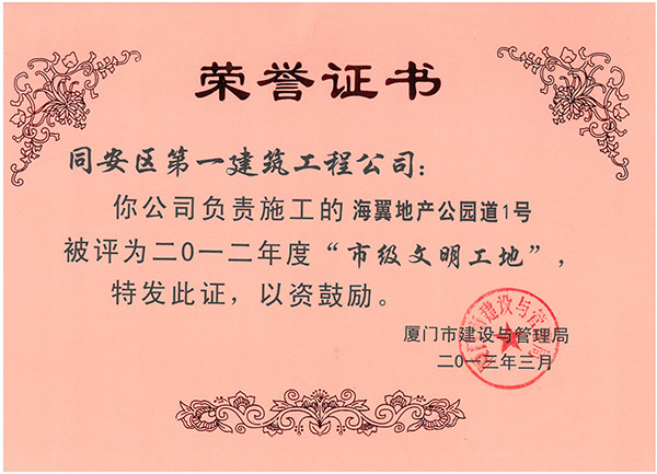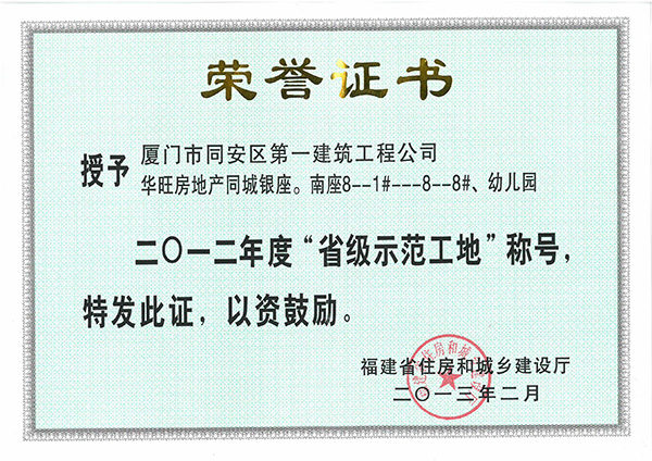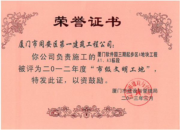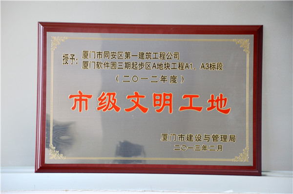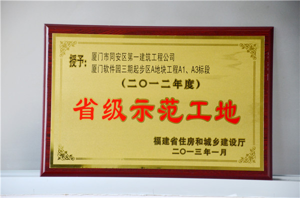 2012年度“省級示范工地“廈門軟件園三期起步區(qū)A地塊工程A1、A3標段